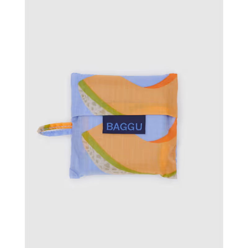 The Baby Baggu Cantaloupe Blue is a compact, reusable shopping bag perfect for carrying your lunch, a six-pack, or extra shoes. Made from recycled ripstop nylon, it comfortably holds up to 50 lbs and folds neatly into a flat 4" × 4" pouch for easy storage.