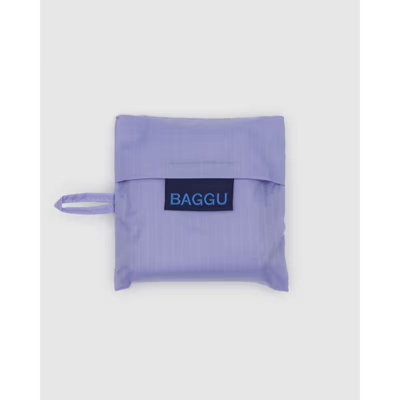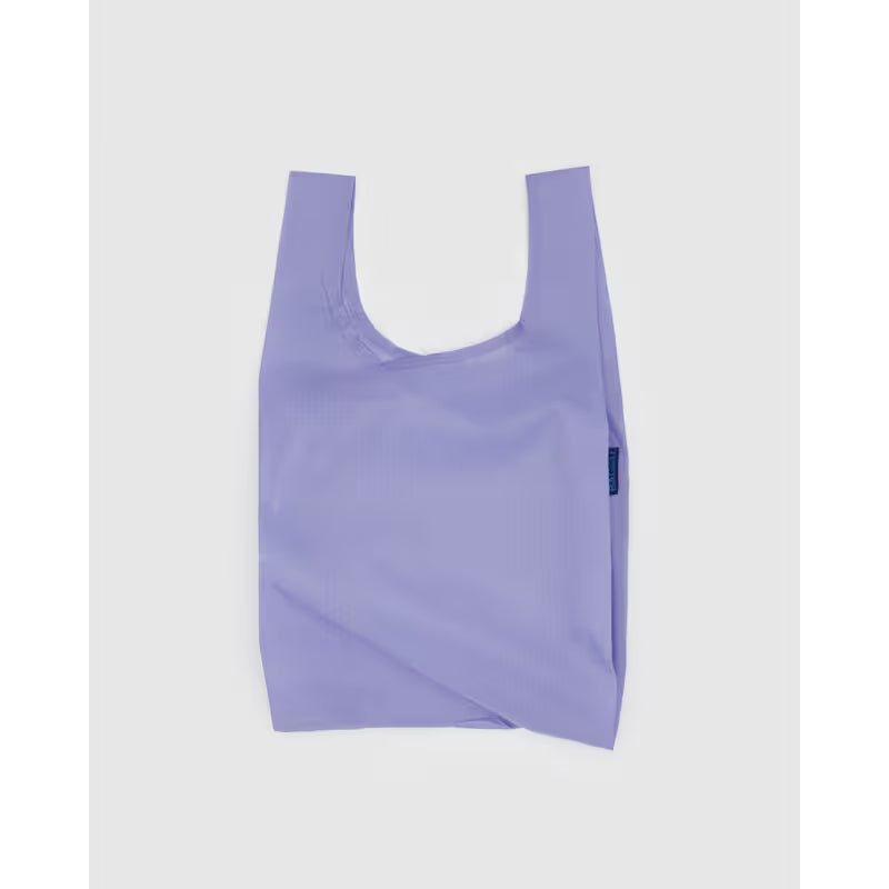 The Baby Baggu Wisteria is a compact, reusable shopping bag perfect for carrying your lunch, a six-pack, or extra shoes. Made from recycled ripstop nylon, it comfortably holds up to 50 lbs and folds neatly into a flat 4" × 4" pouch for easy storage.