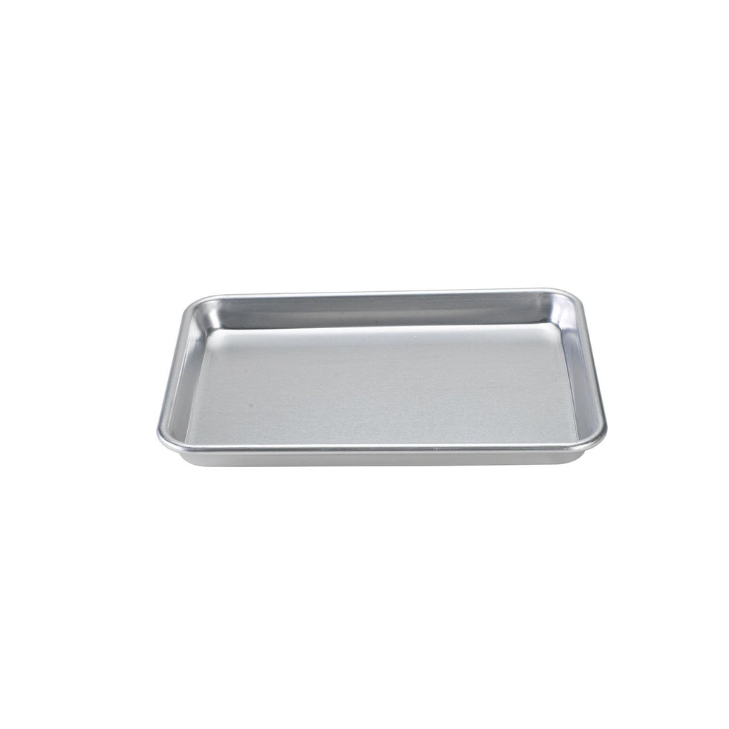 This small sheet pan is sometimes all you need. This top-rated baking sheet is made of pure aluminum for superior heat conductivity and produces consistent evenly browned baked goods every time. These premium pans have a lifetime durability and will never rust. Encapsulated galvanized steel rims prevent warping. Ideal for baking everything from cookies, to roasted vegetables to chicken.
