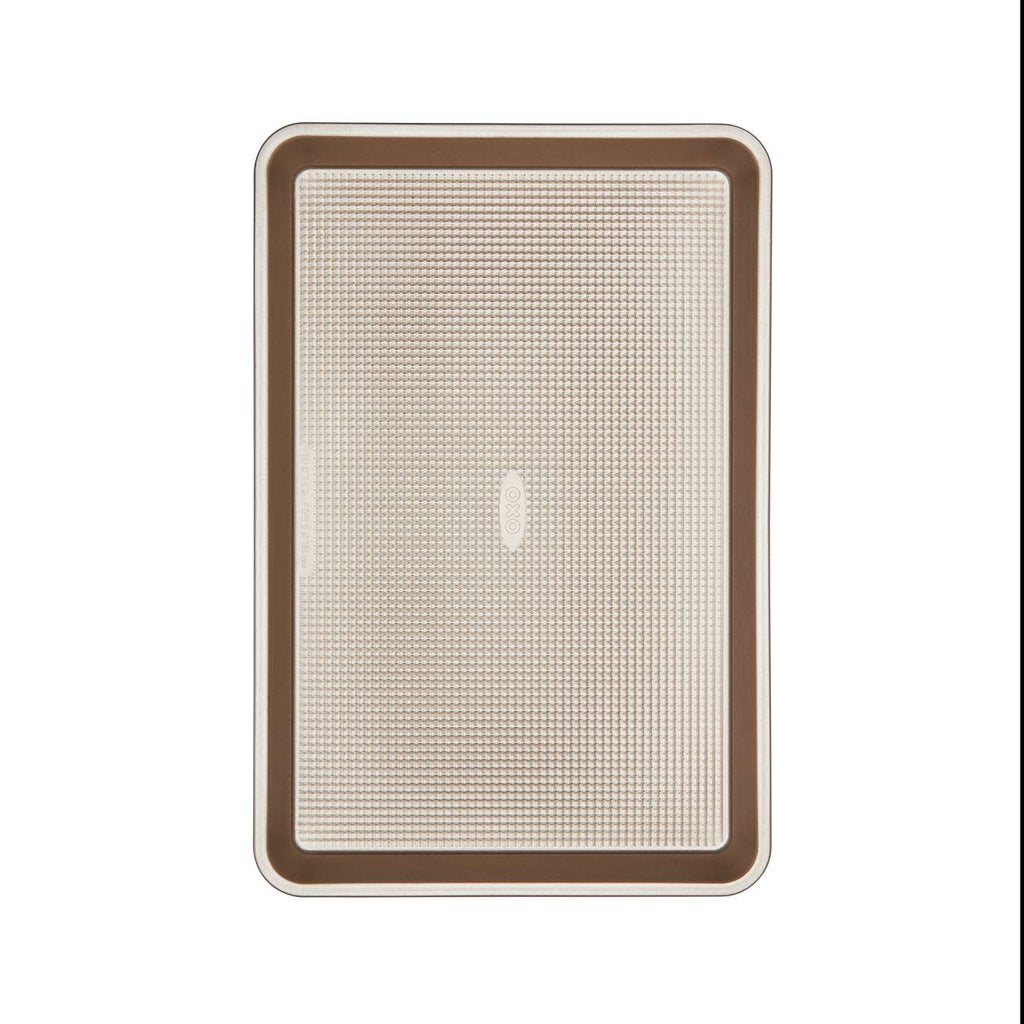 Want your treats to come out of the oven safely and most importantly, very deliciously? The square-rolled edges add reinforcement for structure, strength and durability, and provide a secure grip for easy handling and transferring to and from the oven. Unique micro-textured pattern ensures even baking. Ideal for cookies, jelly-rolls and squares.