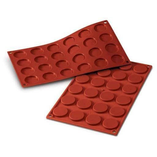 180mm x 306mm x h5mm, Ø35mm Vol. Total: 120ml Cavity: 24 Vol. Cavity: 5ml Made in Italy by Silikomart