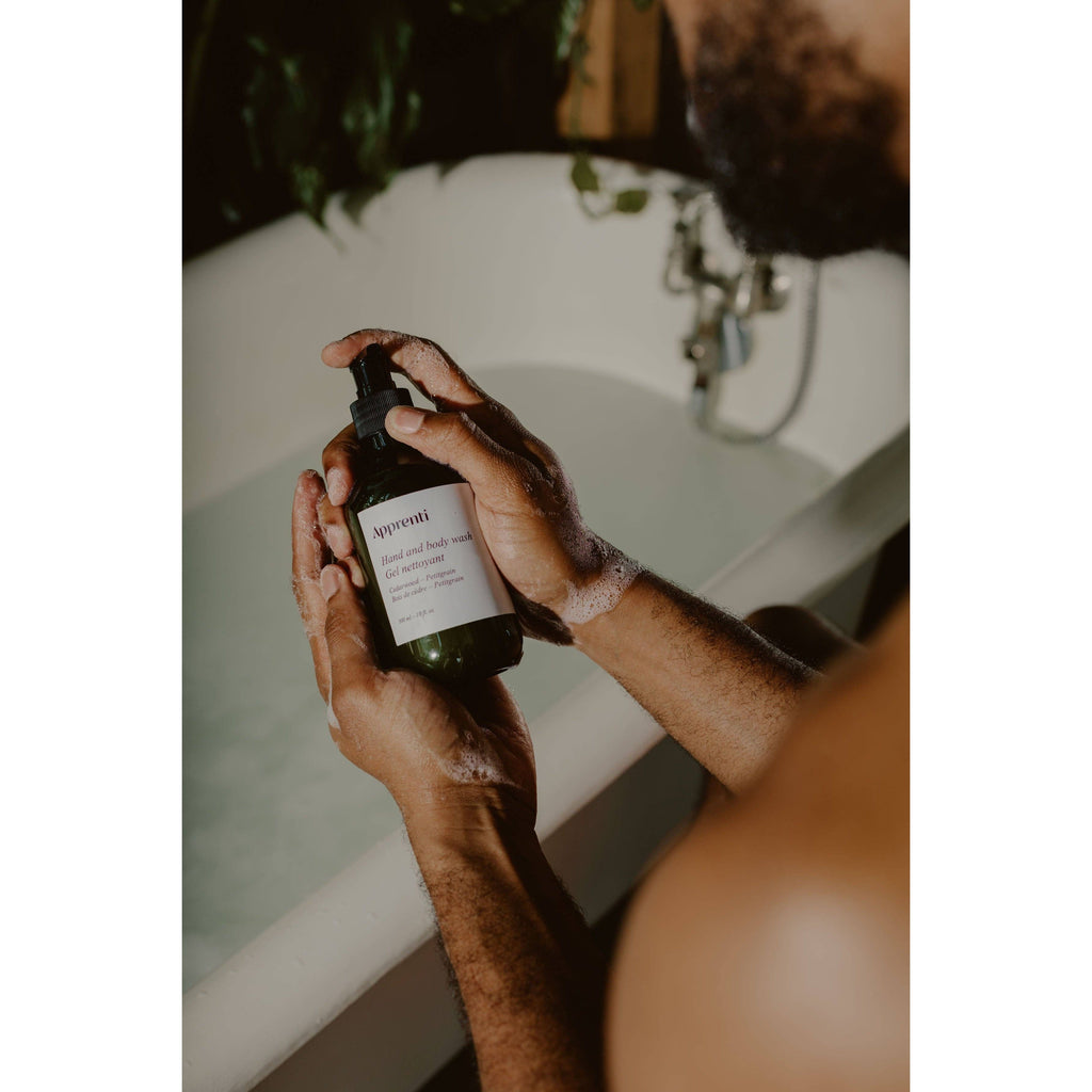 Scented with therapeutic essential oils of petitgrain, cedarwood, and black pepper, this wash offers a fresh, rich woody and slightly smoky scent, elevating your shower experience to a spa-like indulgence.