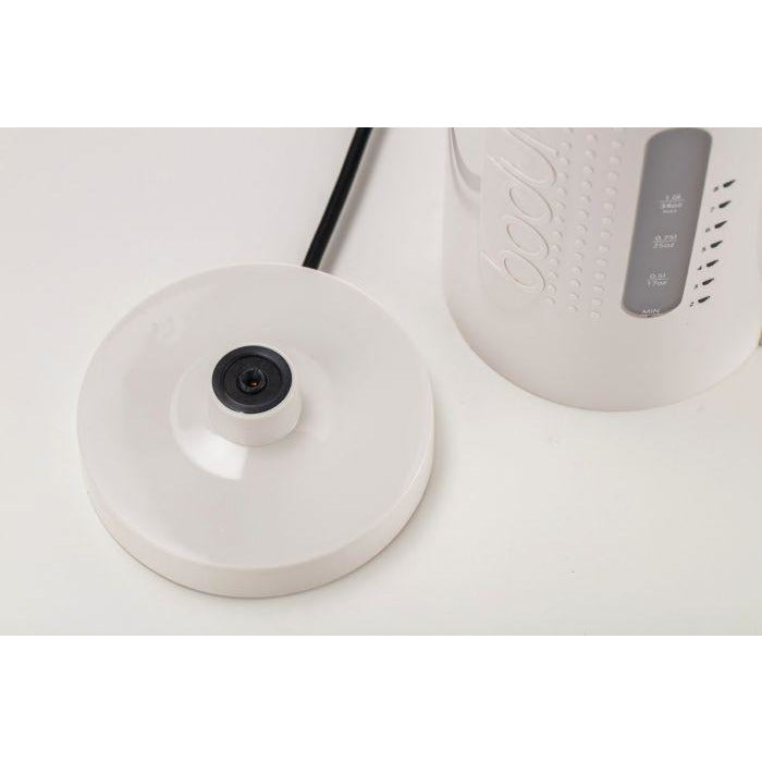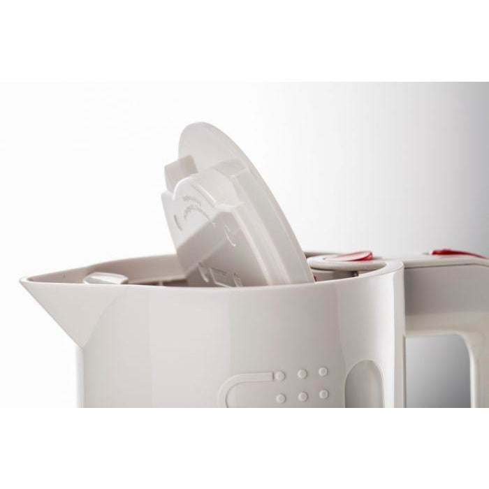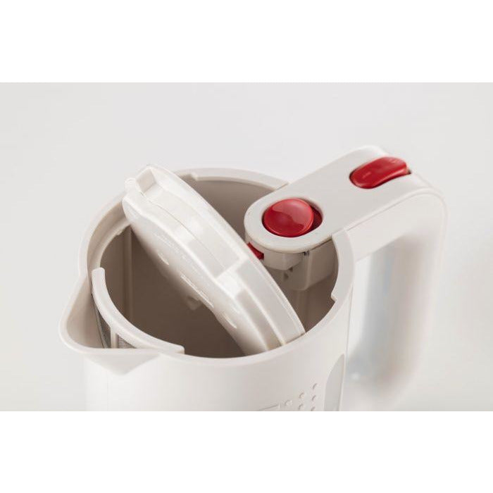 This electric kettle has a rapid-boil function for energy-saving efficiency, as well as water level scale in litres, ounces and cups, so you only boil the exact amount you need. Featuring a manual on/off switch, power indicator light, and steam sensor for automatic shut-off and added safety. The removable filter in the spout will prevent limescale from entering your cup. It has a covered heating element for easy cleaning