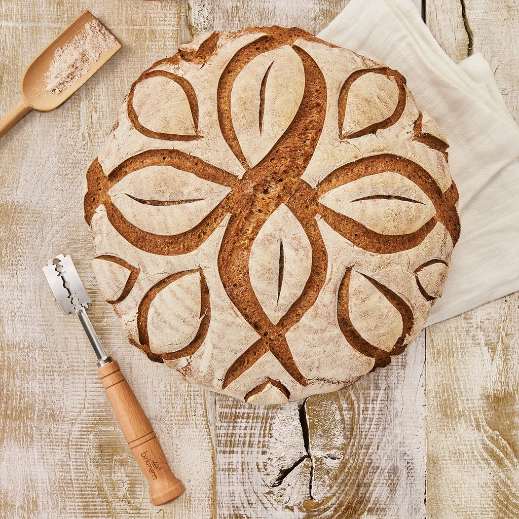 The Birkman Bread Lame offers precise decorative scoring for your home-baked breads. Featuring five spare stainless steel blades, a blade protector, and clear instructions, it ensures safe and easy use. Its sturdy design includes an ergonomically shaped beech wood handle for comfortable handling. Crafted with proven Birkmann quality, this tool is best cared for with gentle hand cleaning to maintain its durability and performance. Perfect for adding professional touches to your baking.