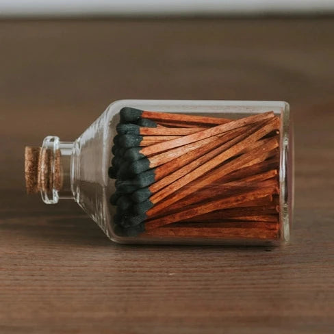 Elevate any ambiance with a set of beautiful matches. Each apothecary jar holds 75 aspen wood matches, with strike paper for easy lighting. Simply remove a match, strike on the bottom, and blow out once finished.