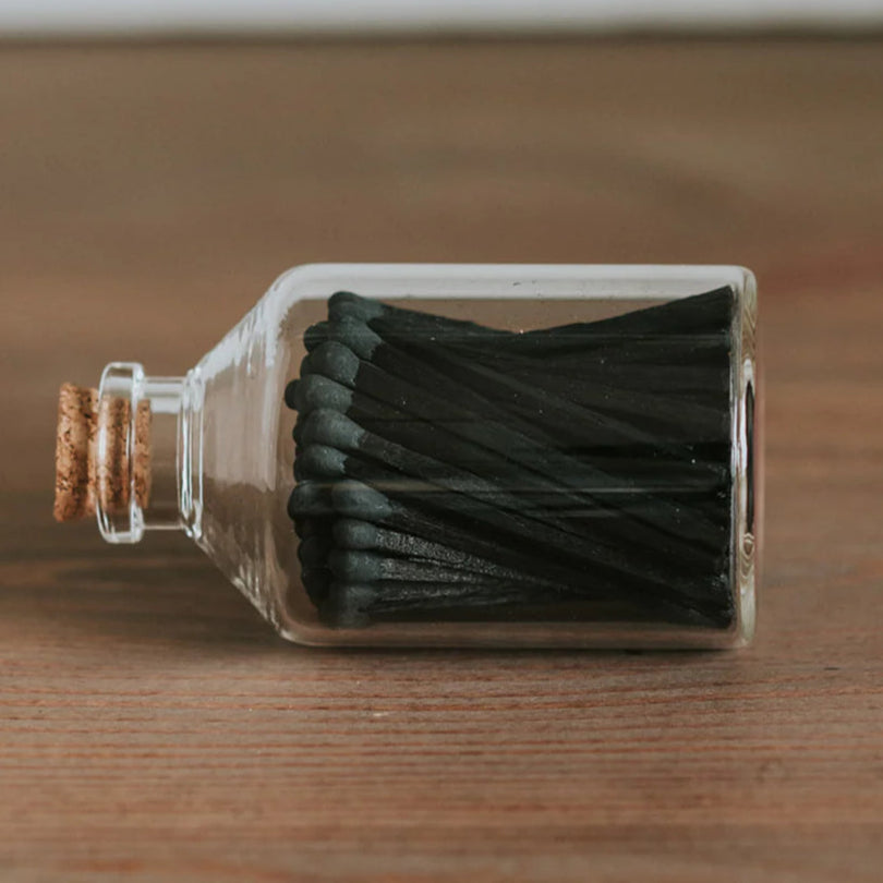 Elevate any ambiance with a set of beautiful matches. Each apothecary jar holds 75 aspen wood matches, with strike paper for easy lighting. Simply remove a match, strike on the bottom, and blow out once finished.