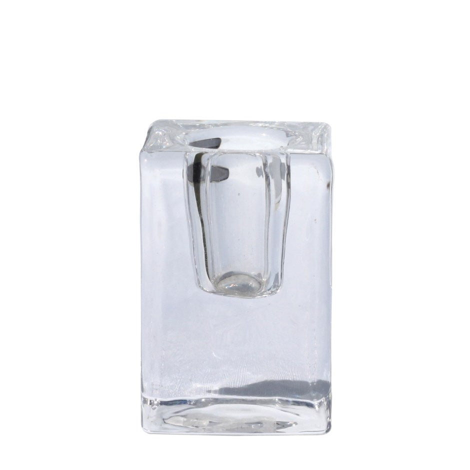 Perfect for a clean classic setting or that narrow tablescape.  Heavy rectangular glass candle holders with a 1” hole suitable for tapers and dinner candles.
