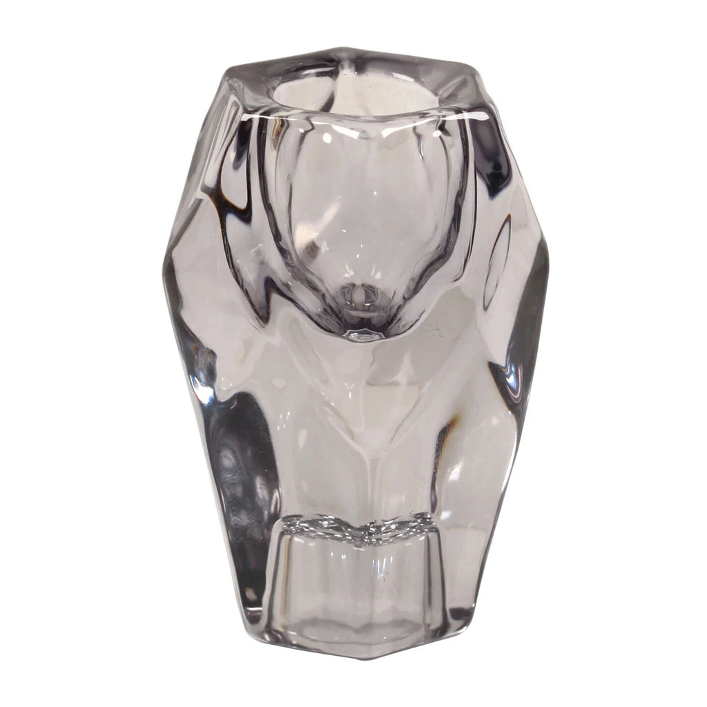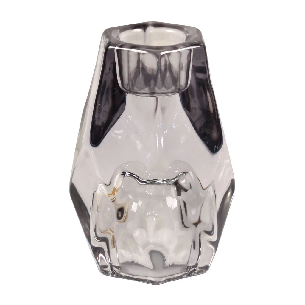 Elevate any space with our Large Black Kye Candle Holder. The heavy geodesic-styled glass holders feature two candle receptacles, creating two unique looks. Perfect for taper and dinner candles, with a 1" hole on top and bottom. Add a touch of elegance to your home with this versatile and stylish piece.