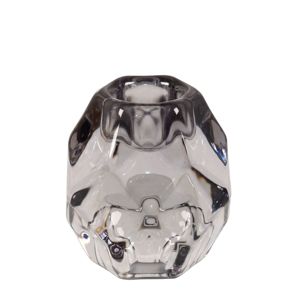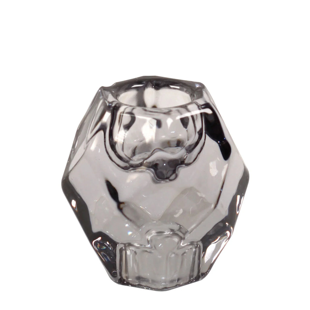 Elevate your candle game with our Small Black Kye Candle Holder. Made of heavy geodesic-styled glass, this holder features a 1" hole on both top and bottom, allowing you to use both tapers and dinner candles. Bring versatility and style to your home decor with this unique piece.