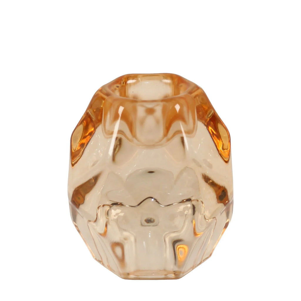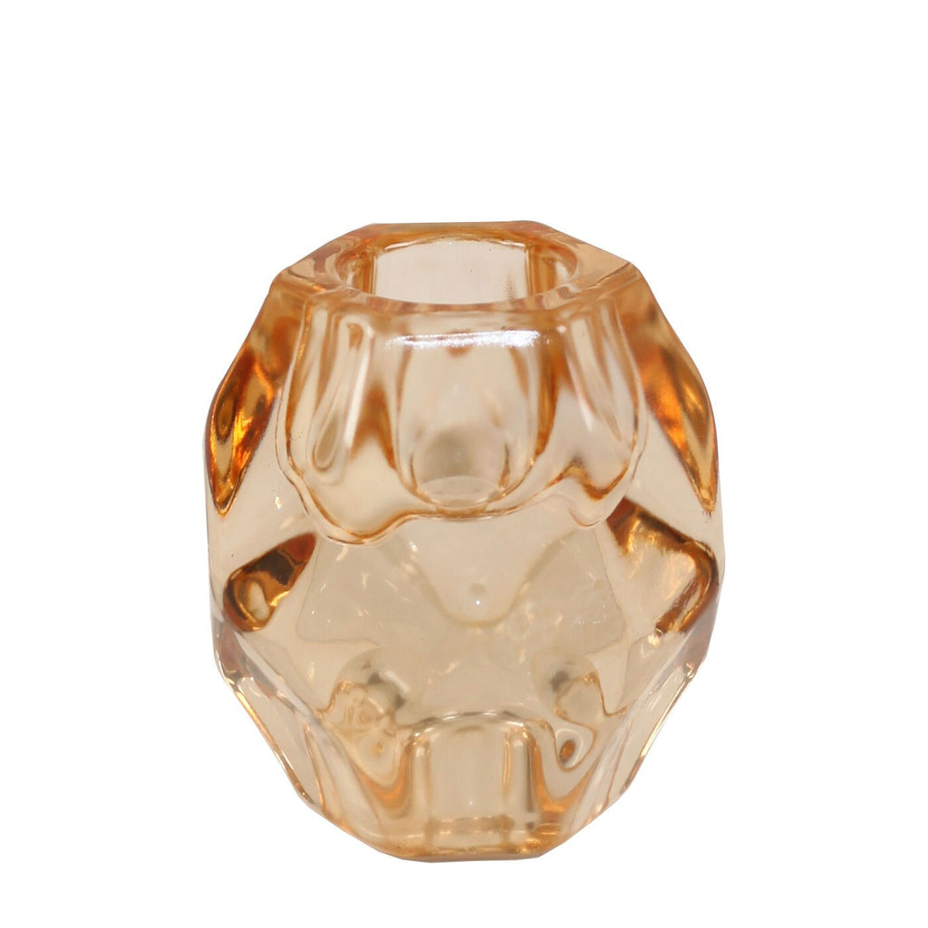 Elevate your candle game with our Small Black Kye Candle Holder. Made of heavy geodesic-styled glass, this holder features a 1" hole on both top and bottom, allowing you to use both tapers and dinner candles. Bring versatility and style to your home decor with this unique piece.