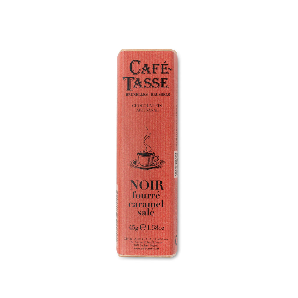 Delight in the boldness of 60% dark Belgian chocolate filled with smooth salted caramel. This 45g bar combines intense cocoa flavors with a touch of sweetness and salt for a balanced treat.