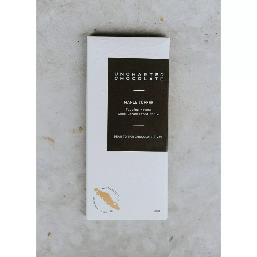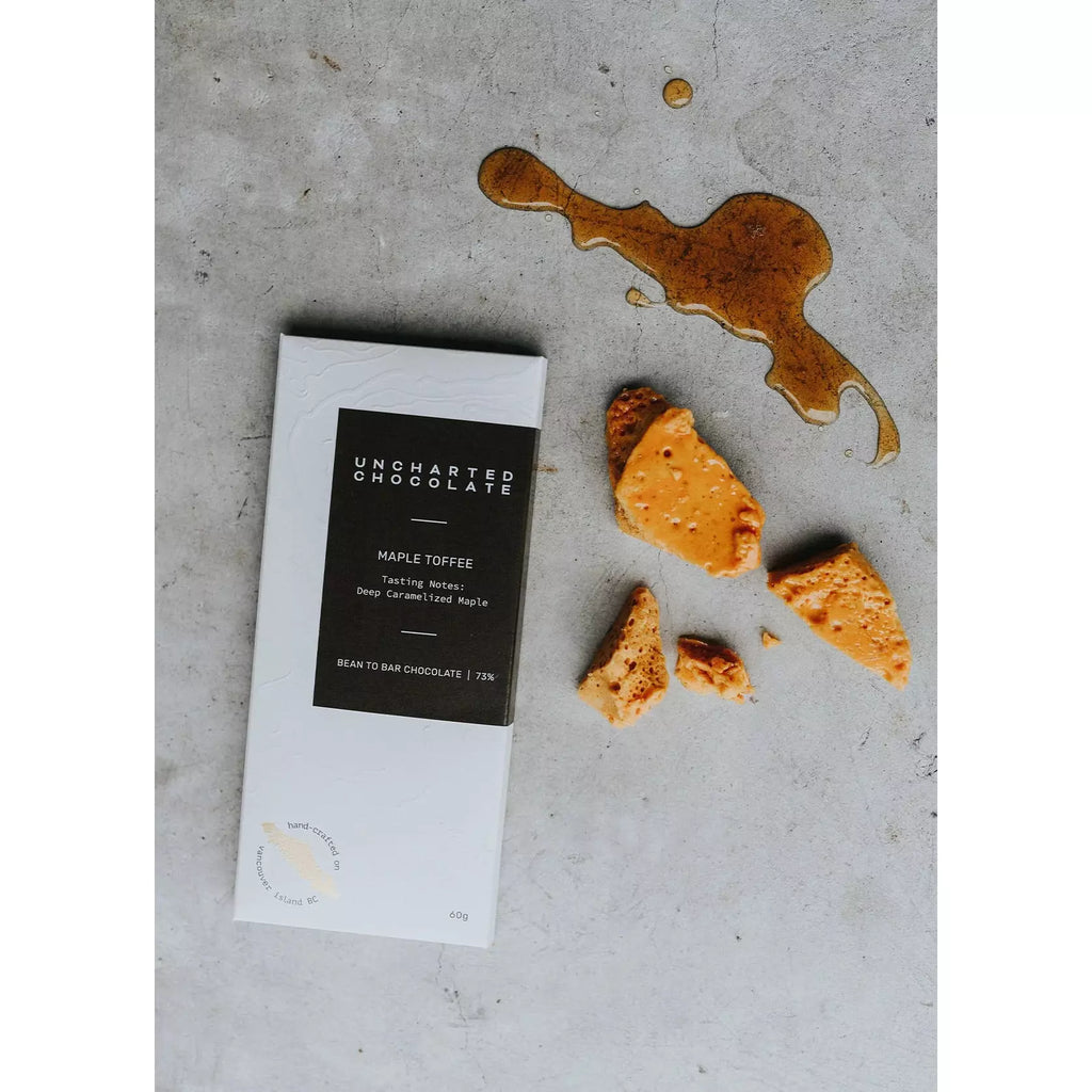 This vegan 73% Peruvian dark chocolate has deep caramelized sponge toffee bits that compliments the dark cocoa perfectly. Made with Vancouver Island’s Beneath the Bark Maple Syrup.