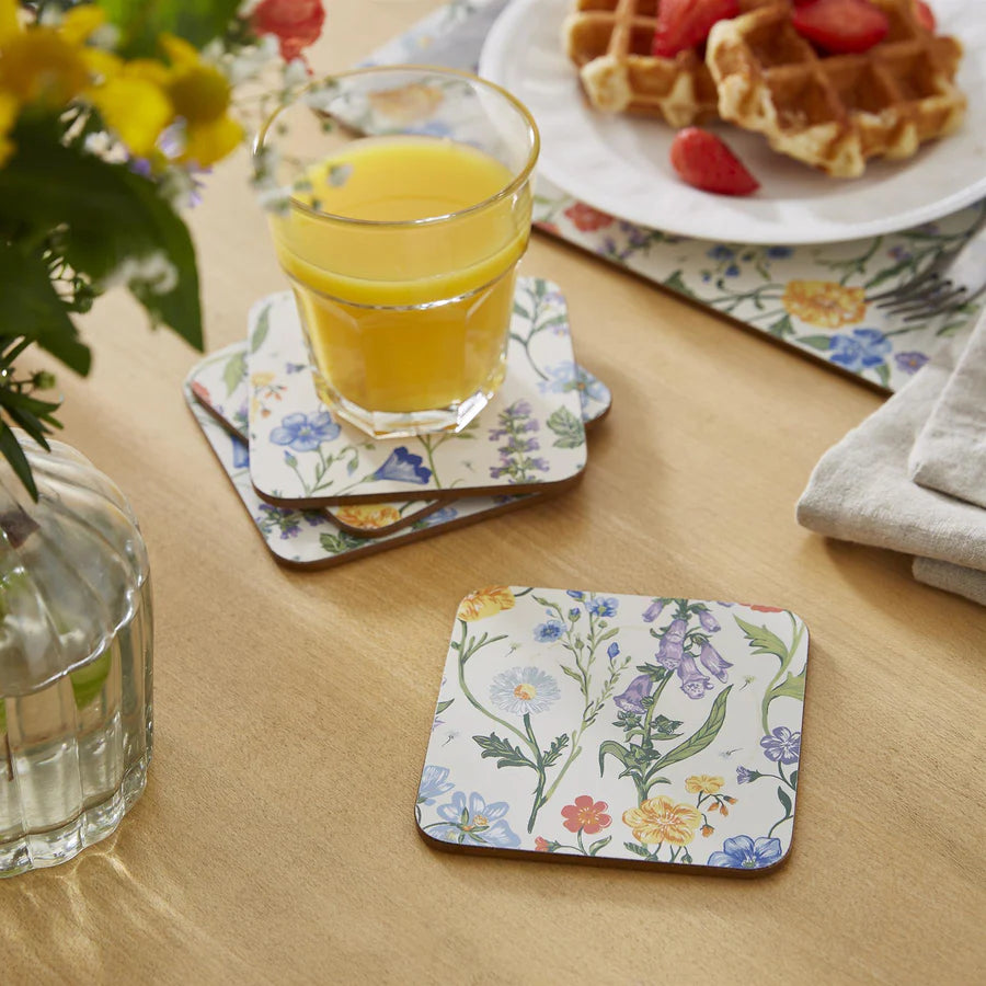 Transform your table into a countryside retreat with this charming Cottage Garden-themed Coaster Set.