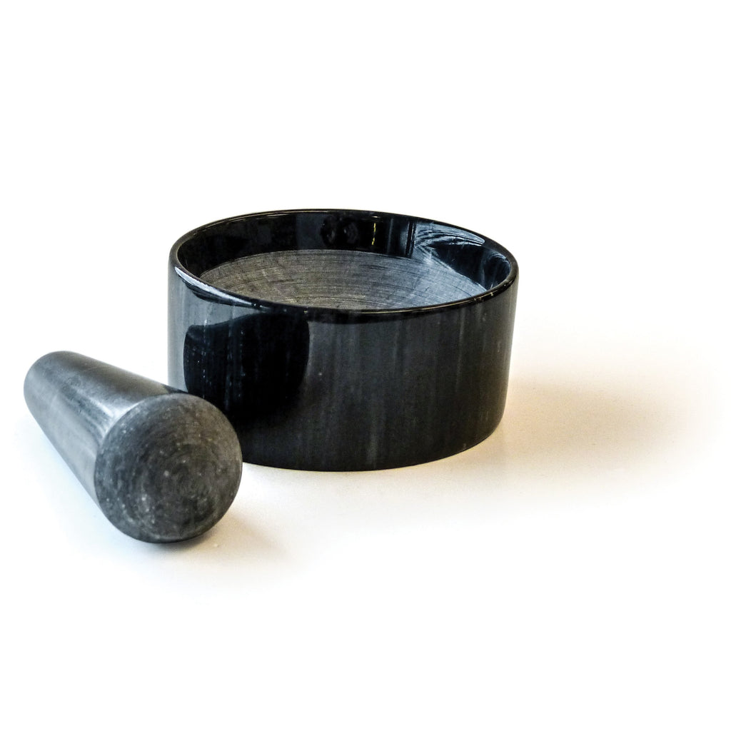 This modern shaped marble mortar has will make quick work of spices and ingredients.