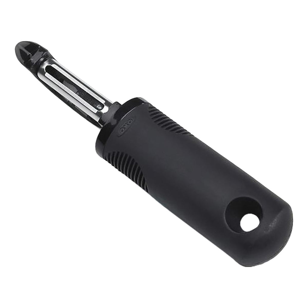 Sharp, stainless steel blade peels easily and effortlessly. Handle is comfortable, even during repetitive action of peeling. Built-in potato eyer.
