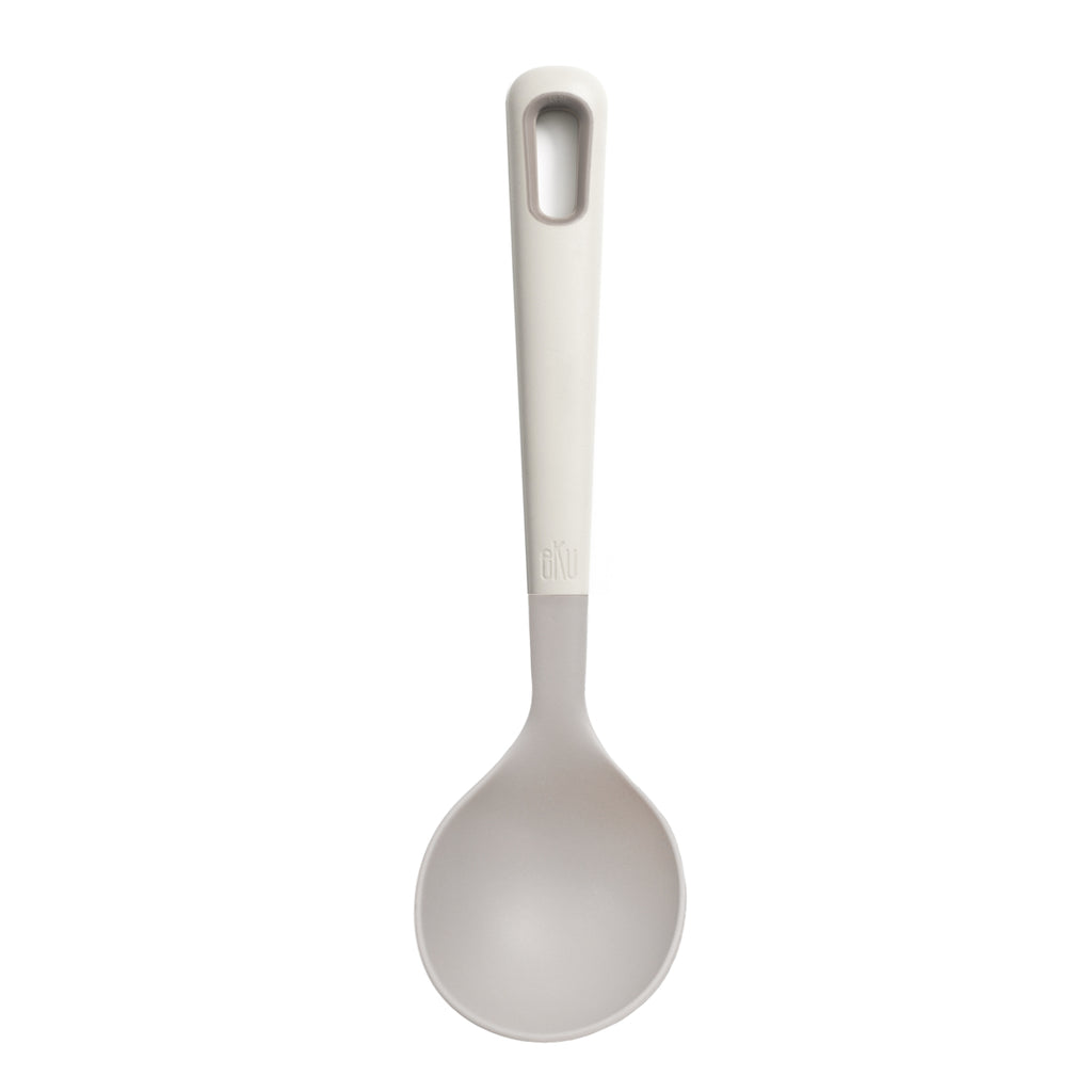 The eKu Ladle is the perfect addition to your kitchen. Its deep scoop design allows for easy serving of soup, stew, sauce, and more. The soft-touch handle provides comfort and the high heat-resistant nylon head makes it safe for use with non-stick cookware. Plus, it's dishwasher safe for easy clean-up.