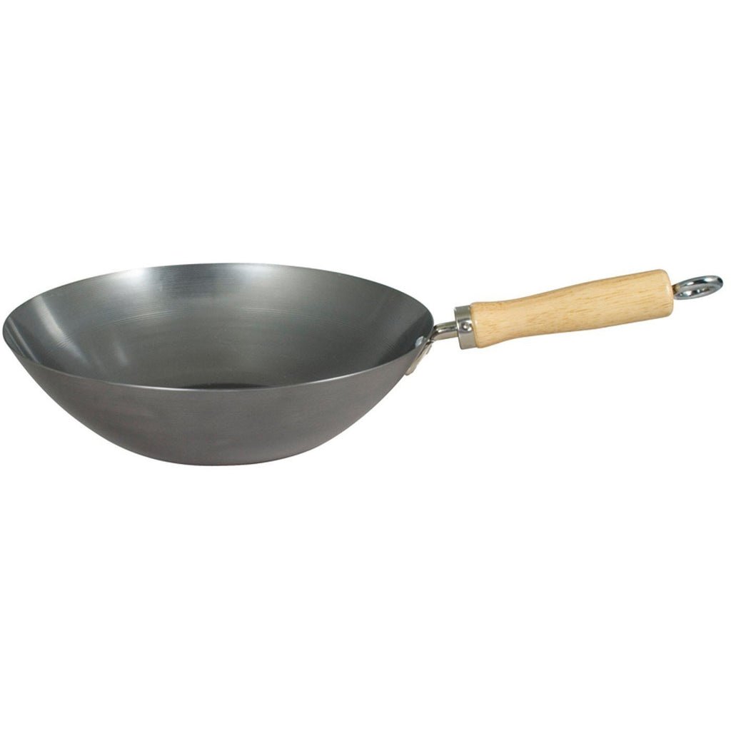 This lighter weight wok is made from 1.2mm gauge Carbon steel, and features a solid wooden handle for an authentic finishing touch. Suitable for most hobs including induction, with a flat base to stay in constant contact with heat.