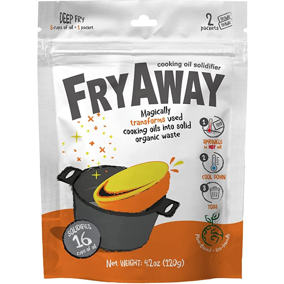 FryAway magically transforms used cooking oil into solid organic waste in three easy steps. Just Sprinkle, Cool down and Toss Away your used cooking oil.