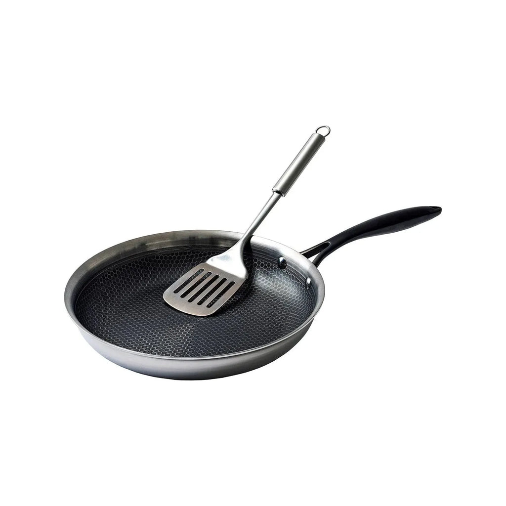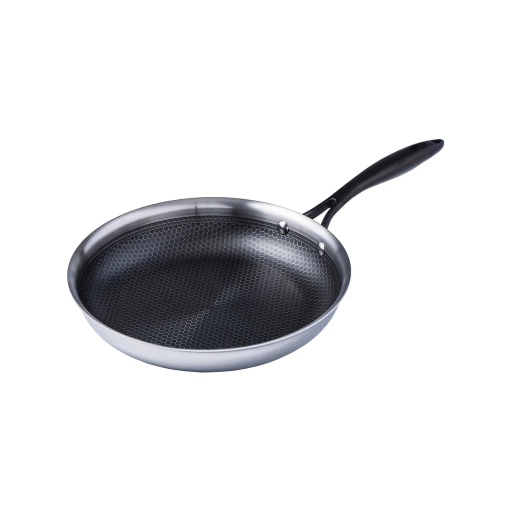 Introducing the Meyer Hybrid Clad Fry Pan - the ultimate combination of stainless steel searing and stick-resistant cooking. With a durable 3-ply clad construction and innovative stick-resistant technology, this pan heats up quickly and keeps oil in the middle for perfect browning and searing. Backed by a lifetime warranty, it's the last pan you'll ever need.