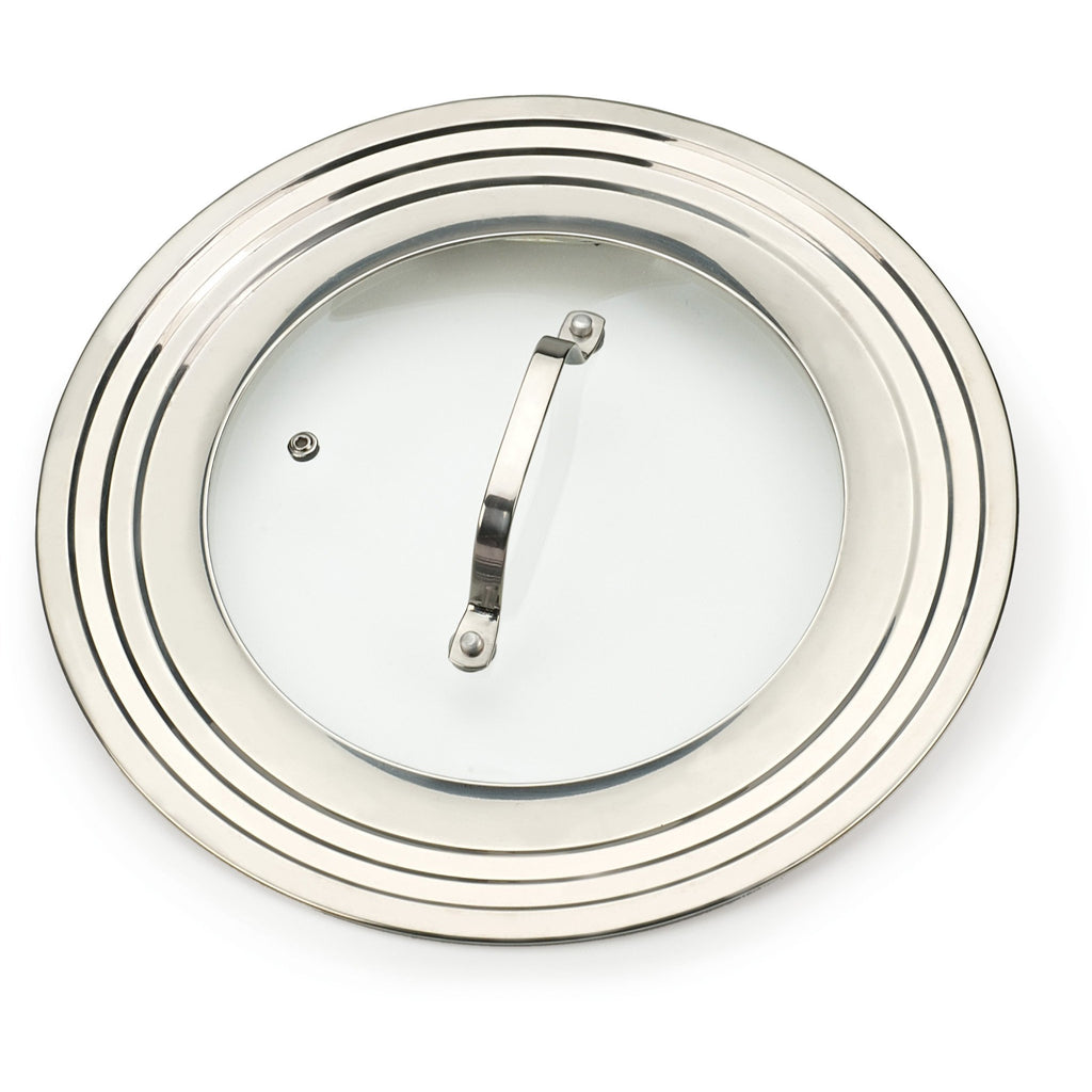 Are your cupboards overflowing with pots, pans and lids? Consolidate your cookware collection, or replace a broken or lost lid with this stainless steel universal lid that fits pots or pans from 7″ to 12″ diameter.