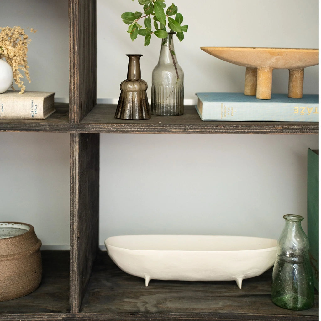 Introducing the Ivory Rockform Footed Dish, a unique and stylish addition to your home decor. Handmade in India, each dish is crafted from aluminum and finished with a smooth powder coating.