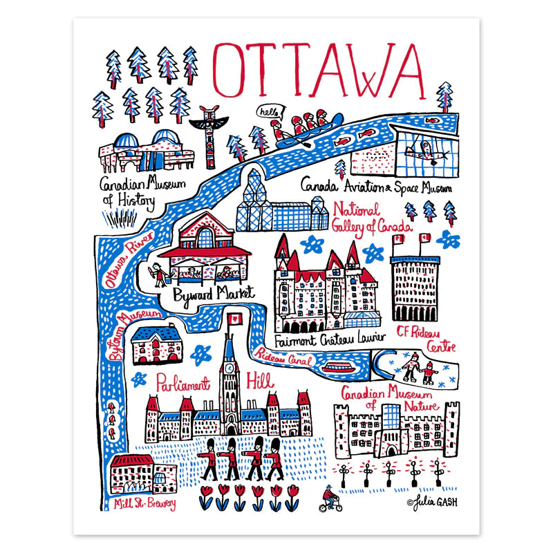 Add a touch of art to your home with this Ottawa Art Print! Featuring a hand-drawn illustration of iconic Ottawa Cityscape landmarks, this print is printed on high-quality 100lb cover card stock, ensuring a lasting and vibrant piece for your space.