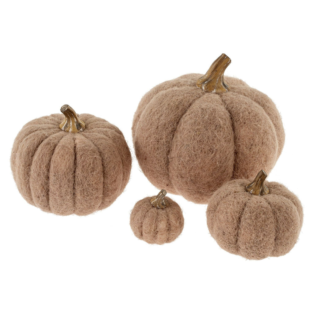 Decorate your harvest table with our adorable, lifelike felt pumpkins. Hand crafted from felted wool and capped with resin stems, they feature neutral earthen colours and look charming when displayed in a bountiful pumpkin patch. Spot Clean.