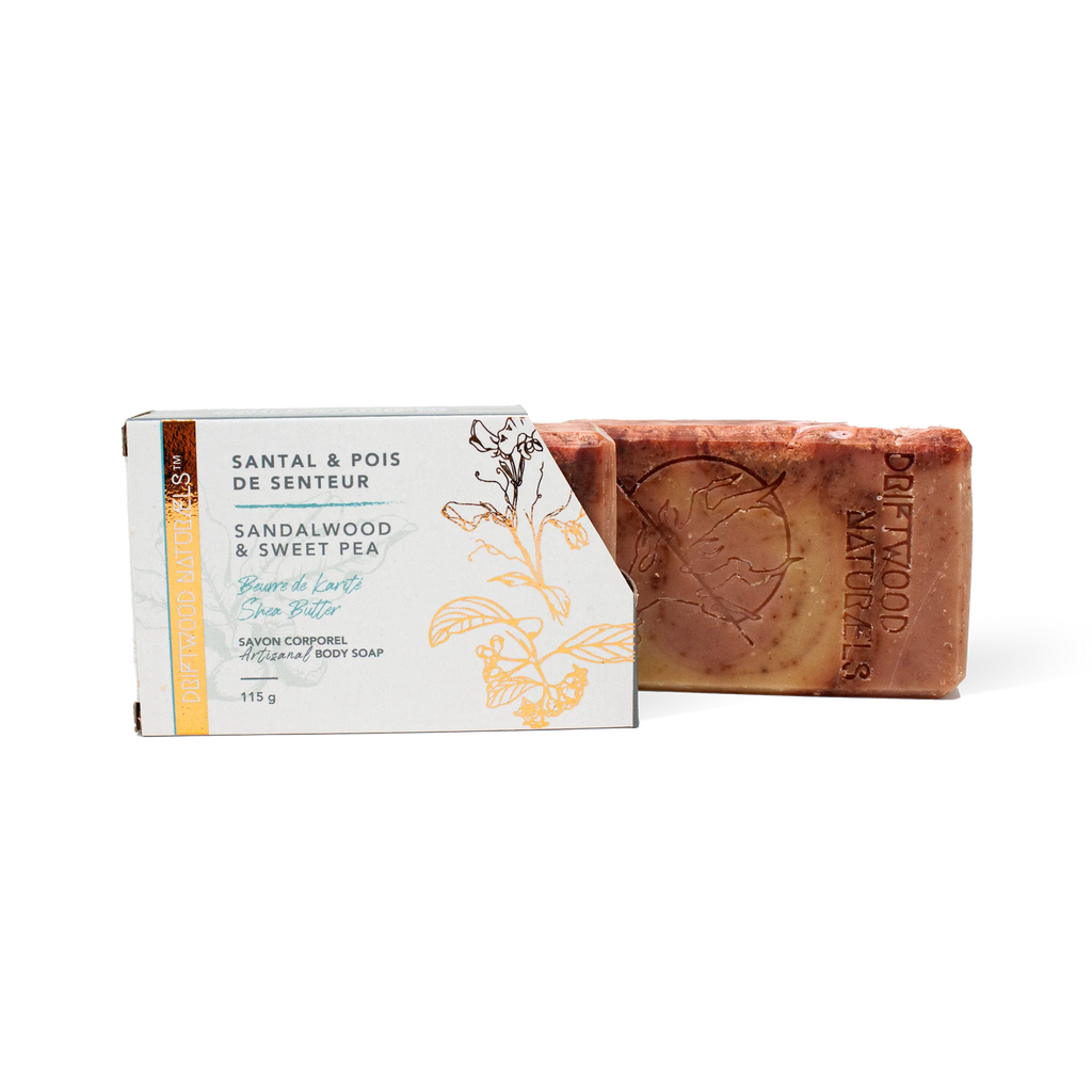 Indulge in Driftwood Sandalwood & Sweet Pea Soap, a handcrafted blend of nourishing ingredients. Its Shea Butter and RSPO-Certified Organic Palm Oil create a solid and long-lasting bar, while Grapefruit Seed extract offers antibacterial properties. The enchanting Sandalwood and refreshing Sweet Pea scents will leave your skin moisturized and revitalized. Elevate your skincare routine with this luxurious treat.