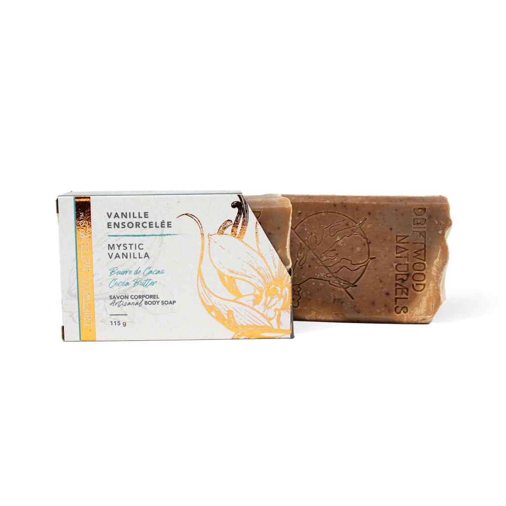 Indulge in the sensual and tropical ambience of Driftwood Mystic Vanilla Soap. Made with rich Cocoa Butter, this handcrafted soap moisturizes and firms for a luxurious bathing experience. Transport yourself to the lush forests of Madagascar with its illusive touch of Musk. Relax and enjoy its sweet aroma and creamy lather for soft, nourished skin.