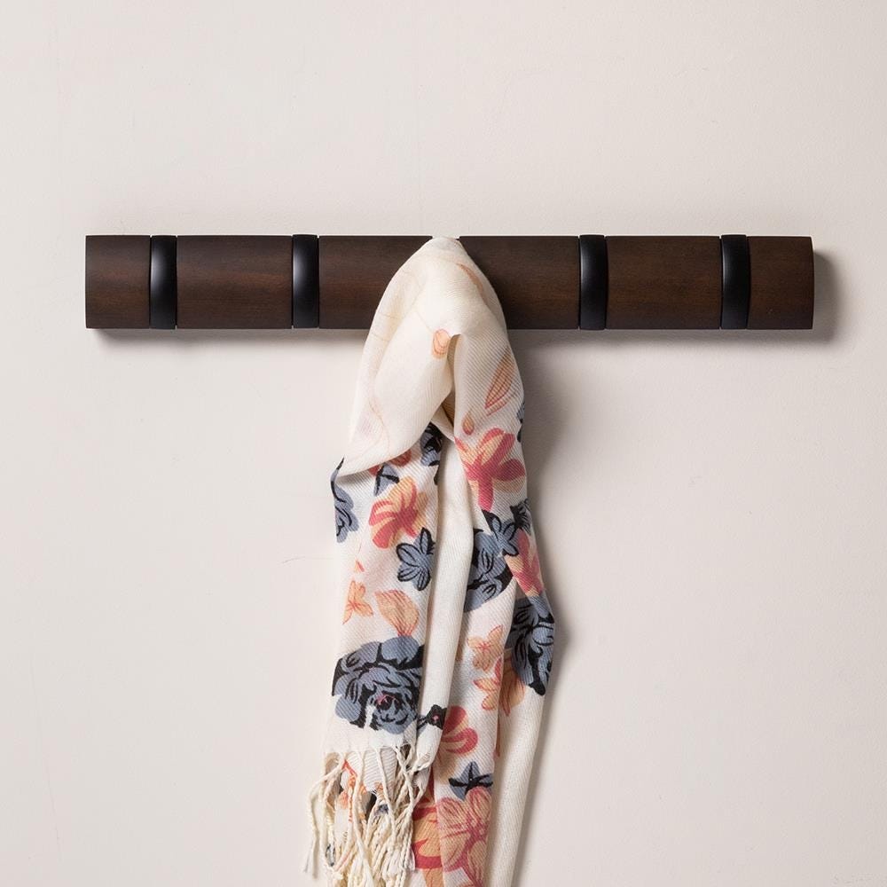 Flip is a wall mounted coat rack with ample hanging space where you need it most. The clever design with multiple hooks that retract when not in use, has each one slipping neatly back into its groove for a sleek look and space-saving functionality. Thanks to the sleek profile and hidden mounting hardware, Flip mounts seamlessly to virtually any wall and offers styling that looks great in any entryway or foyer, regardless of how big or small it is.