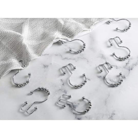 Upgrade your shower experience with Double Shower Curtain Rings - Satin. Annex Double Roller Rings provide effortless gliding with decorative beads for a sleek look. These rust and water-resistant rings are lightweight yet durable, preventing damage to your shower curtain and liner. Enjoy enhanced functionality and aesthetics.