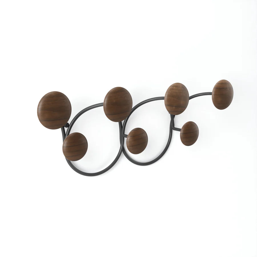 A playful and stylish solution for your storage needs. With a unique mix of wood and metal, this 7-hook wall rack doubles as a piece of art and can hold up to 5 lbs per hook. Easily install and organize your jackets, bags, and hats.