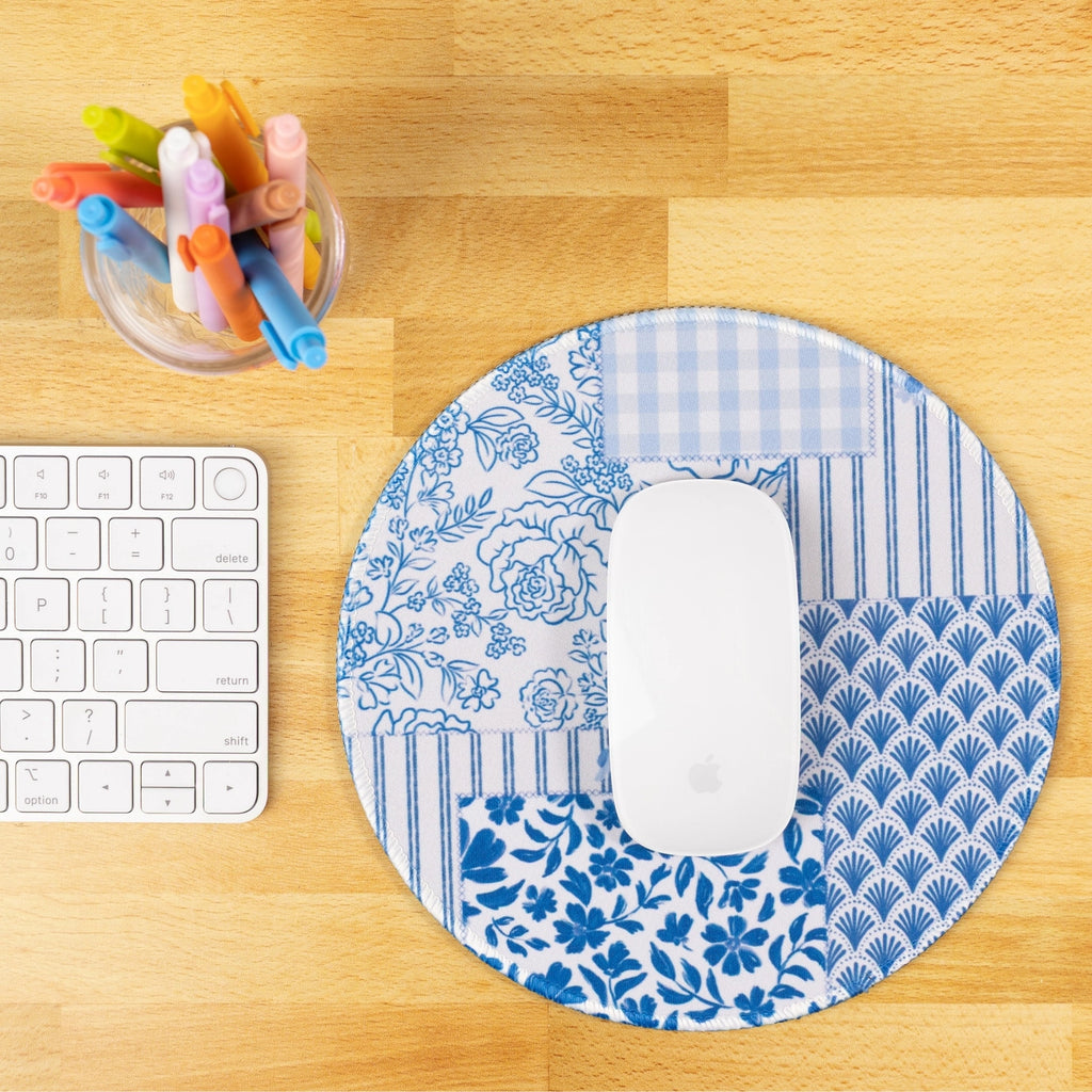 Style up your workspace with this beautiful blue coastal patchwork mousepad. Its non-slip rubber backing keeps it firmly in place while its low-friction surface lets you move your mouse with ease and accuracy. Welcome a touch of nature to your desk!