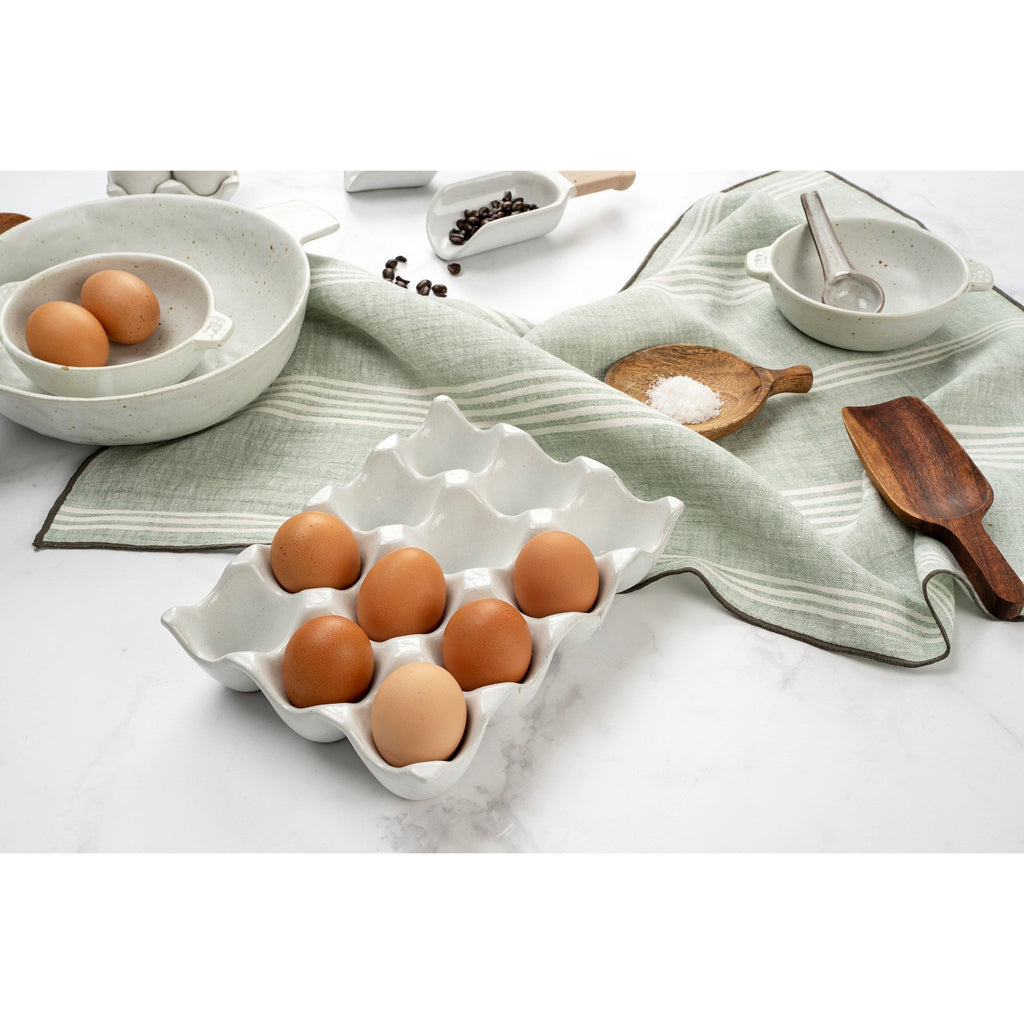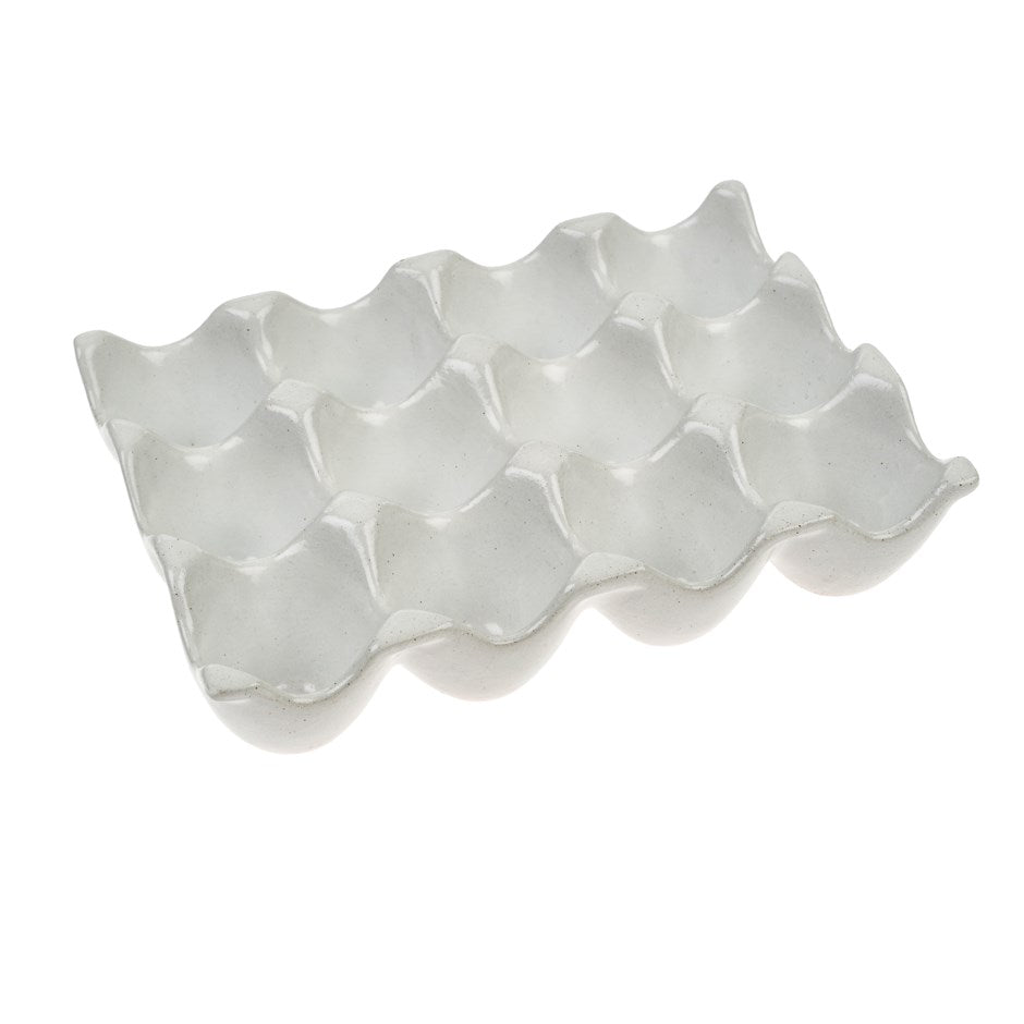 Modelled after the cardboard classic, this milky white porcelain ceramic egg tray holds a dozen fresh or hard-boiled eggs. Use it in the refrigerator, to keep eggs in close reach while cooking and baking, or as a charming brunch presentation for guests.