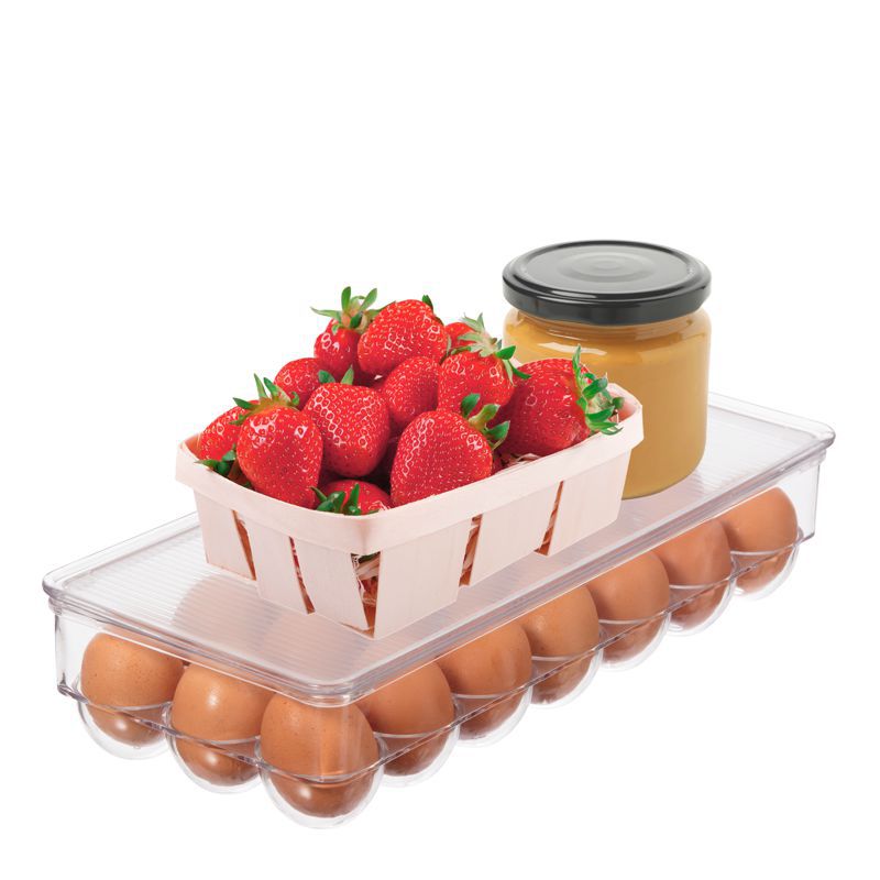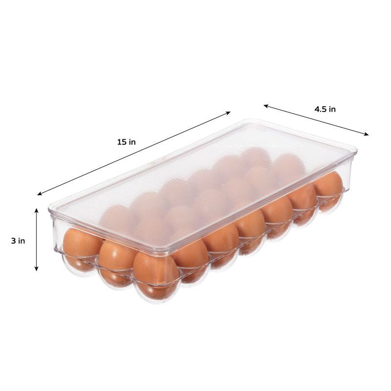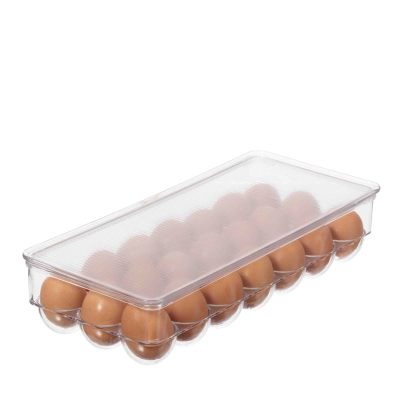 Keep your eggs organized and fresh with the OGGI 21 Egg Tray. With a capacity for 21 eggs, this tray with cover is perfect for storing and transporting your eggs. Measuring at 38 x 16 x 7.6cm, it's space-efficient and convenient. Say goodbye to cracked or lost eggs, and hello to hassle-free egg storage!