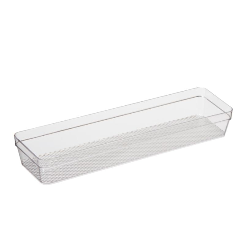 Organize your drawers with the OGGI Drawer Organizer! This transparent organizer is perfect for any space, from your kitchen to your bathroom or office. The different sizes can be mixed and matched to fit your specific needs. Plus, it's BPA free, ensuring safety for you and your contents.