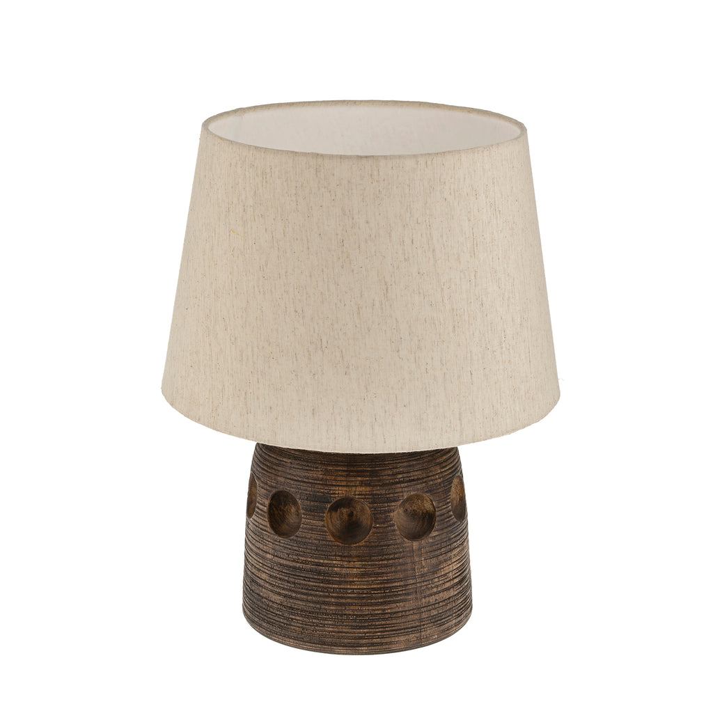 Topped with a soft linen shade, this lamp casts a gentle, inviting glow perfect for bedside tables, reading nooks, or living room corners. Its timeless organic form works harmoniously with various decor styles, while the natural finish celebrates the wood's authentic character. Compatible with standard type A bulbs up to 100 watts.