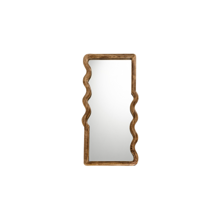 Transform your space into a warm, earthy oasis with the Ripple Wooden Mirror. Handcrafted in India from mango wood, its curvy, scalloped shape adds a softer touch to your home. Elevate your decor and create a cozy, inviting atmosphere.