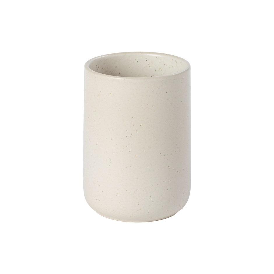 Matte finished utensil crock with a speckled earthy tone for effortless kitchen decor and practical organization.