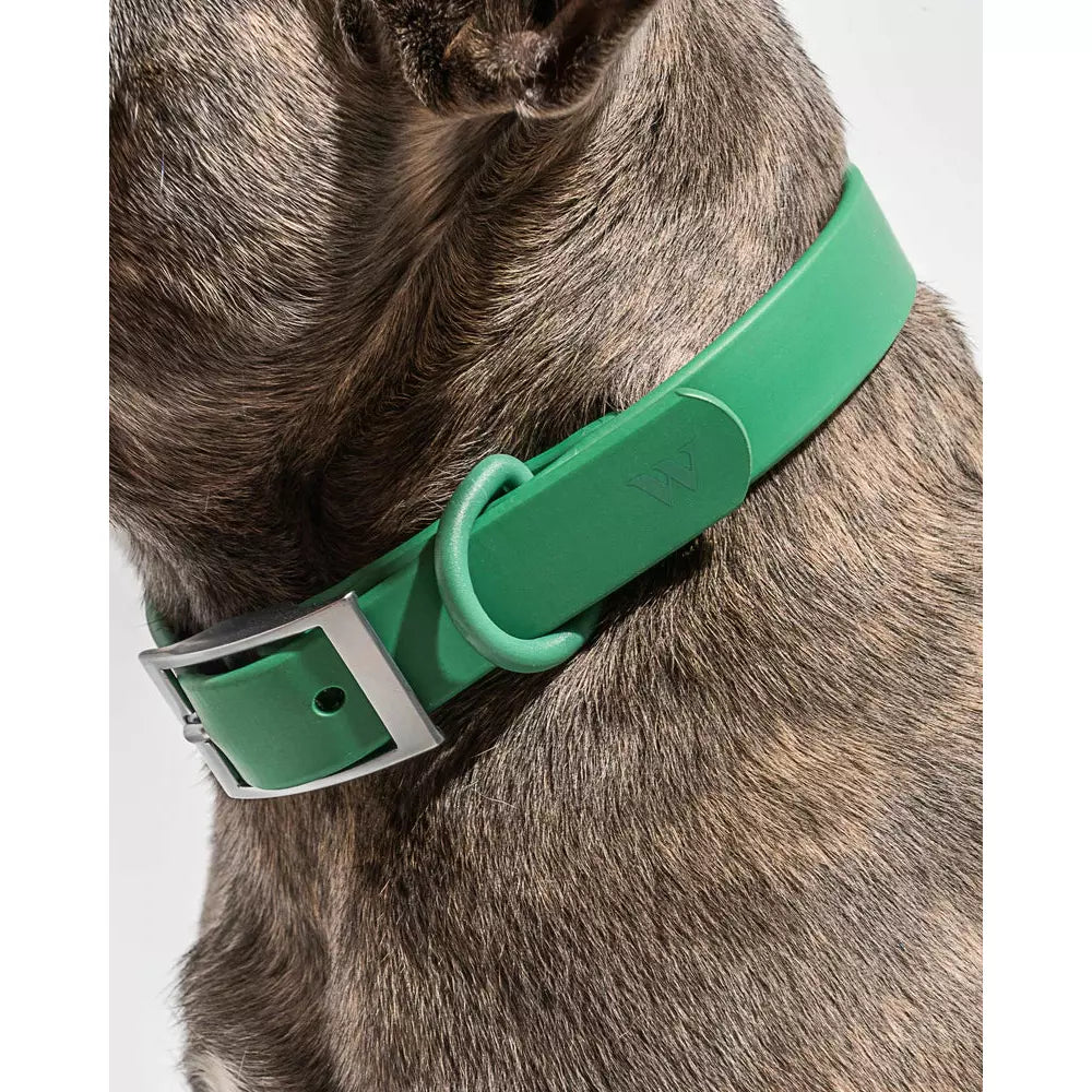 Easy to use, simple to clean. Made with a super strong flex-poly strap, this all-weather collar is comfortable and functional. Plus it's also dirt and odour resistant. With a zinc alloy buckle and coated carbon steel D rings, this collar is sure to last many a walk.