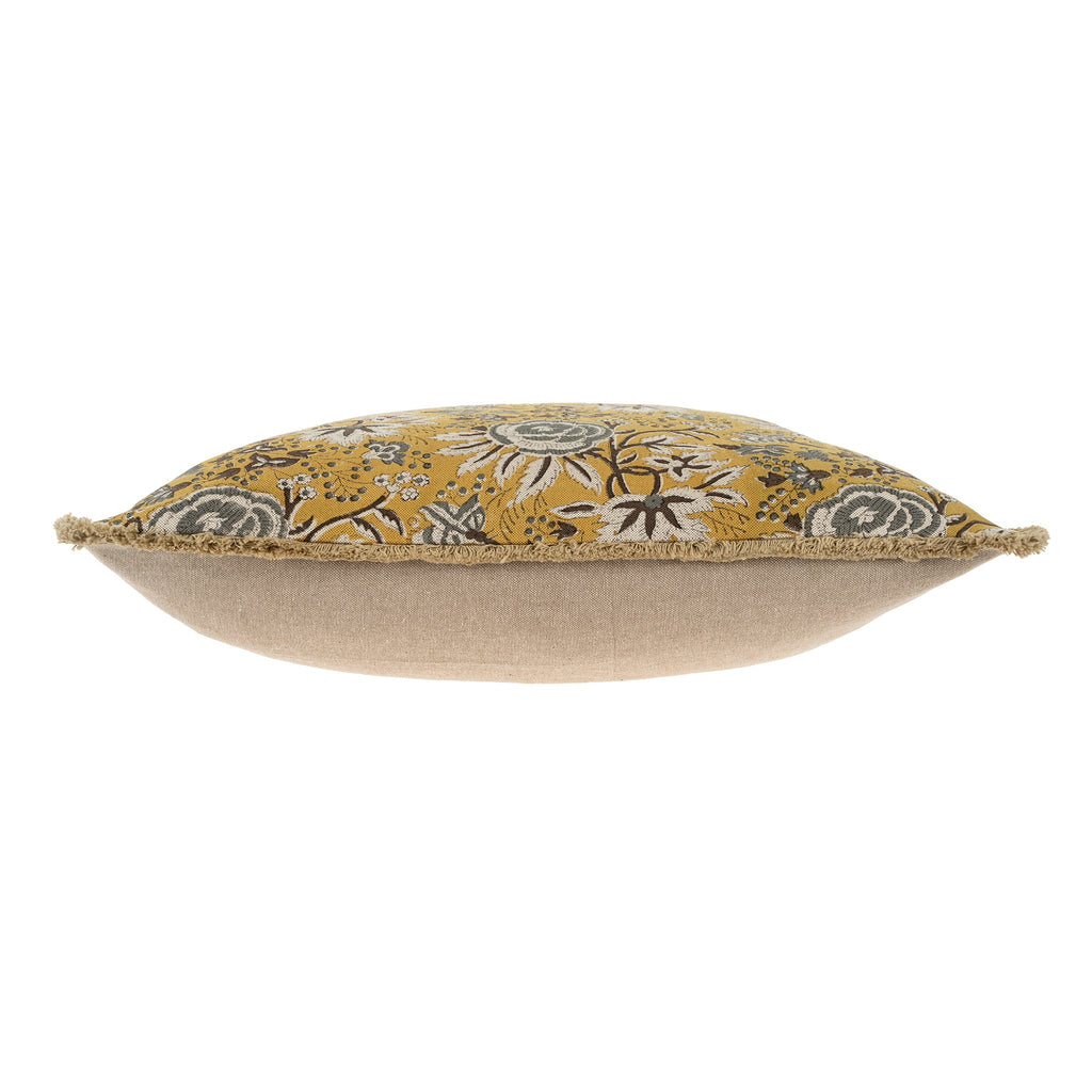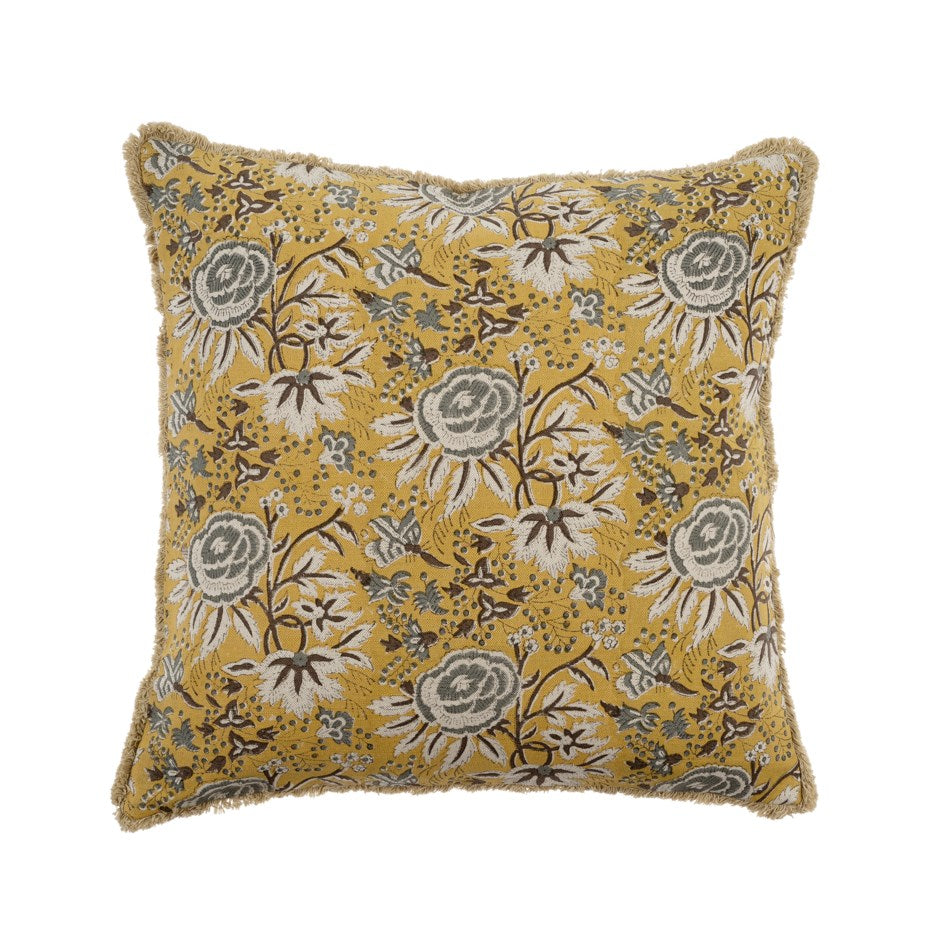 Vintage inspired block printed florals come alive on the linen weave and intricate edgings of the Clementine Linen Block Print Pillow, evoking a feeling of collecting flowers on a winter walk. With a sunny mustard palette, it will layer beautifully atop colour blocked neutrals.