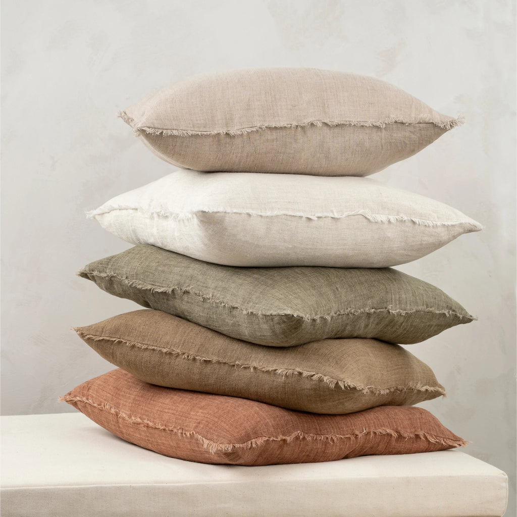 Elevate your home decor with our Lina Linen Pillow in Chambray. Crafted from soft stone washed Belgian linen, this 20x20 pillow features a charming frayed edge and a premium feather down filler for a comfortable and luxurious feel.