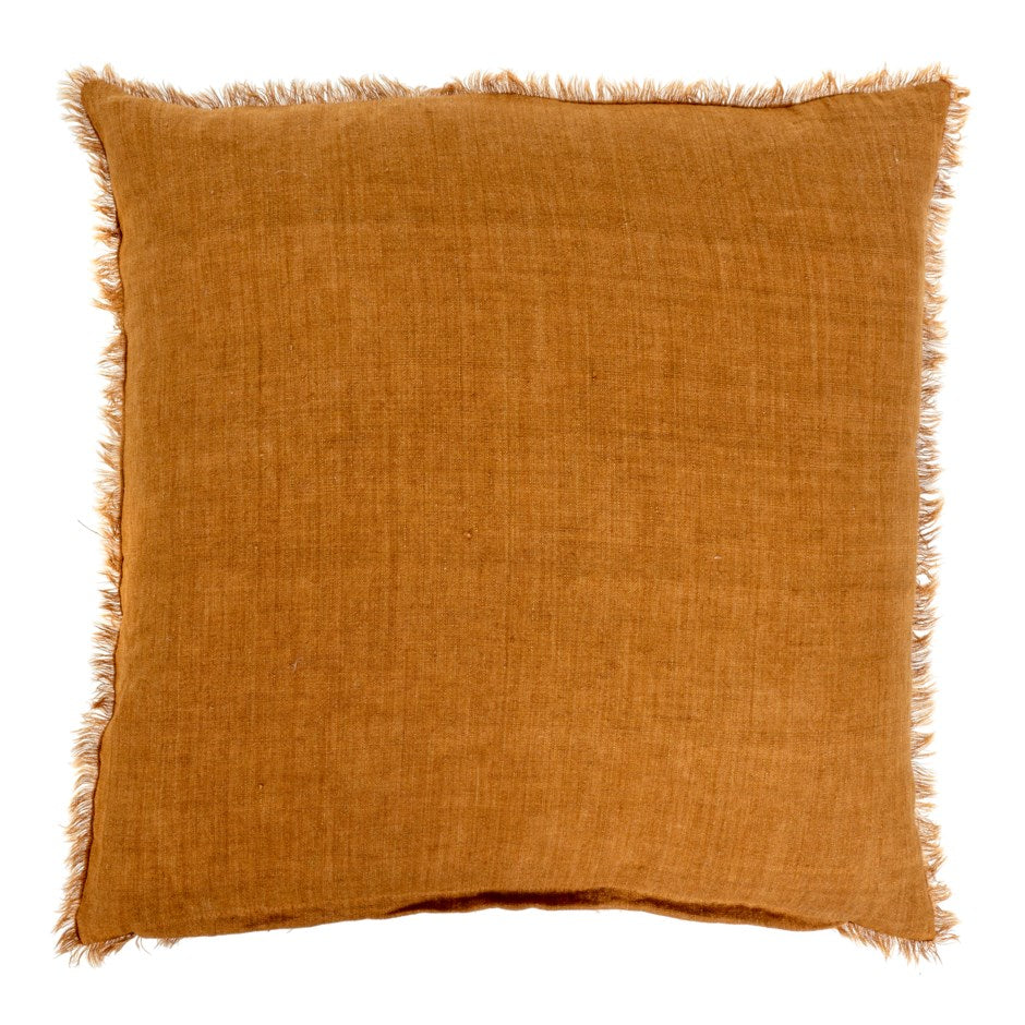 Introducing the Lina Linen Pillow Gold - a luxurious and romantic addition to your home! This stone-washed Belgian linen pillow features a beautiful frayed edge, premium feather down filler, and a gorgeous golden hue. Transform any space with its soft, luxurious feel and add a touch of boho flair to your home. Comfort and beauty: that's the Lina Linen Pillow Gold!