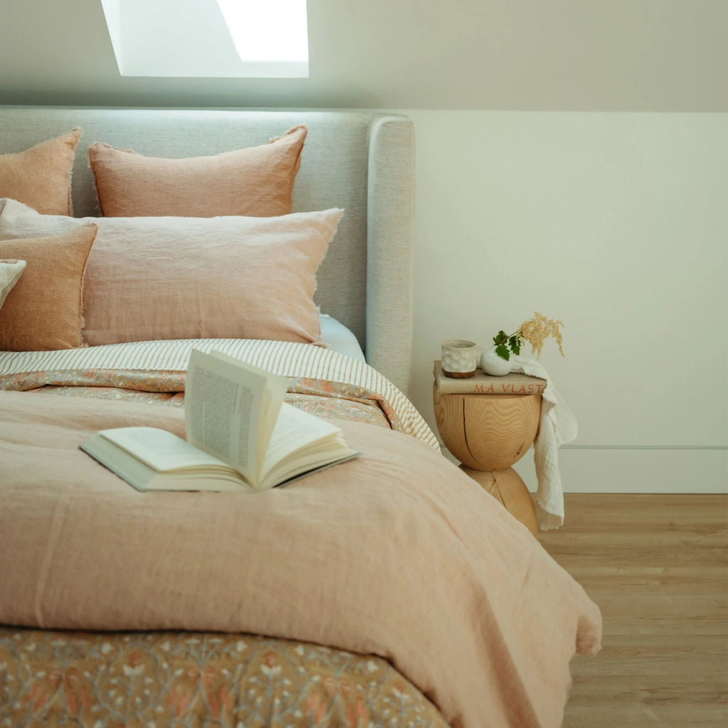 Add romantic boho appeal to your home with our series of soft stone washed Belgian linen pillows. Classic linen is updated with a frayed edge, making them beautiful standalone cushions or backdrops for layering.