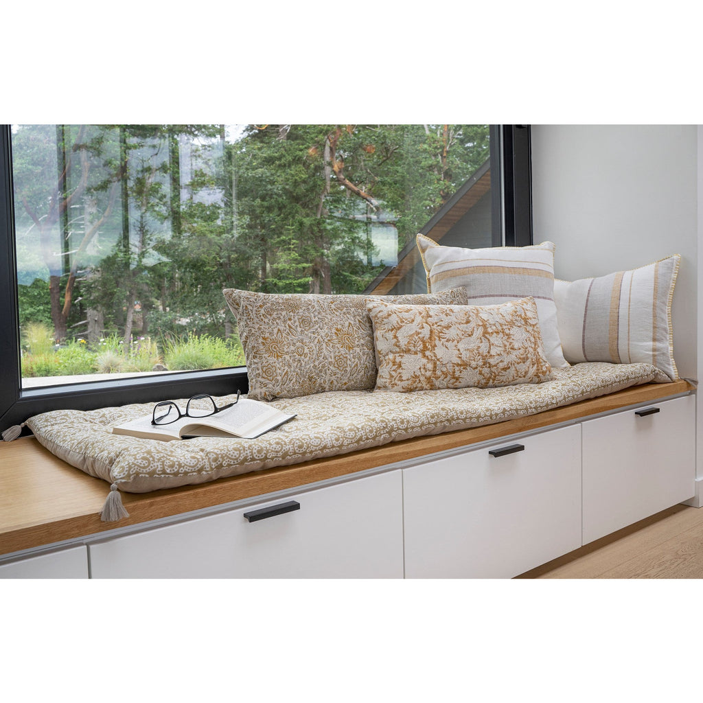 An intricate floral adds so much character to a room. Printed on a cotton-linen blend with complementary cotton backing the Lulu Linen Lumbar Pillow’s warm ochre and natural linen palette and botanical detailing adds a classic finishing touch to styled beds and sofas.