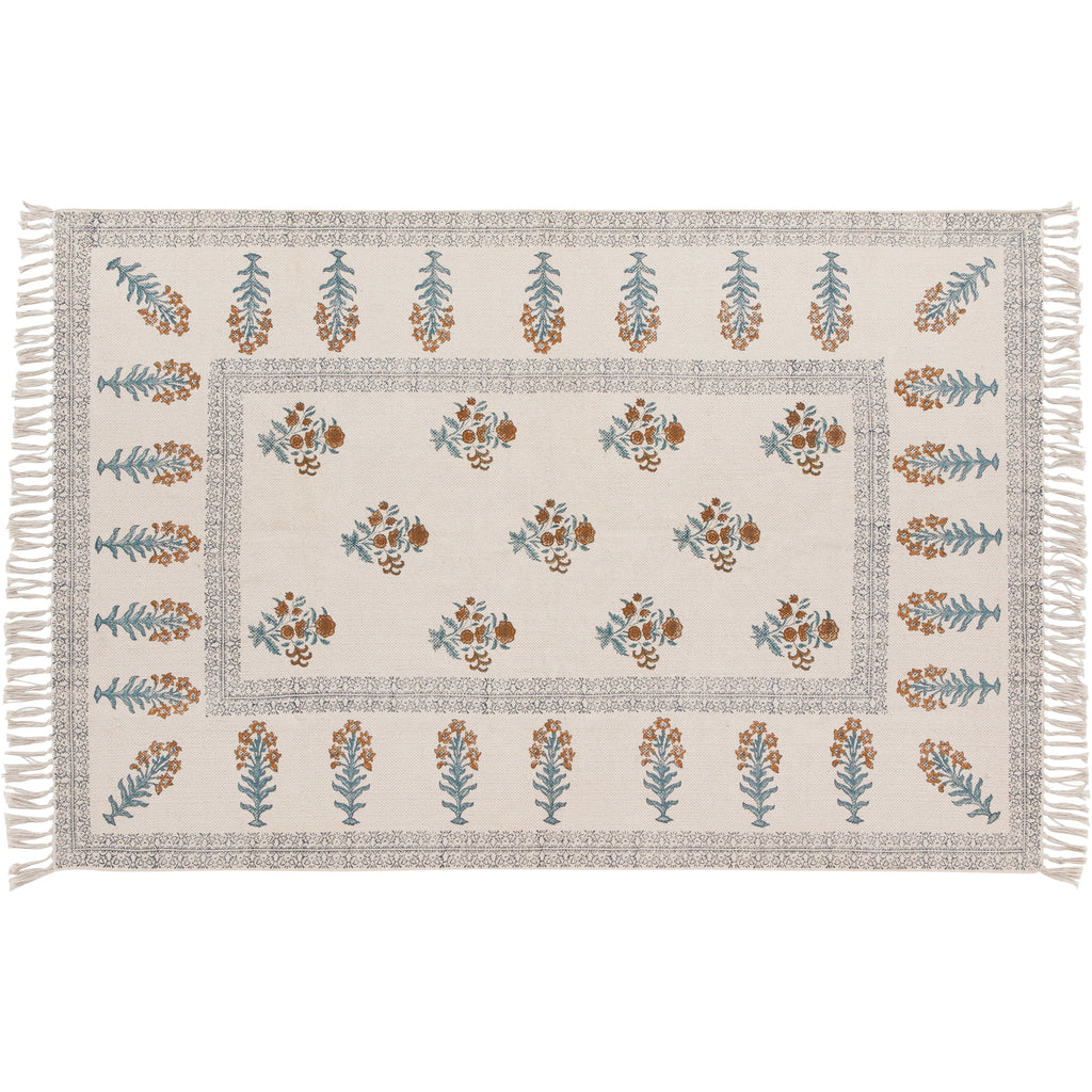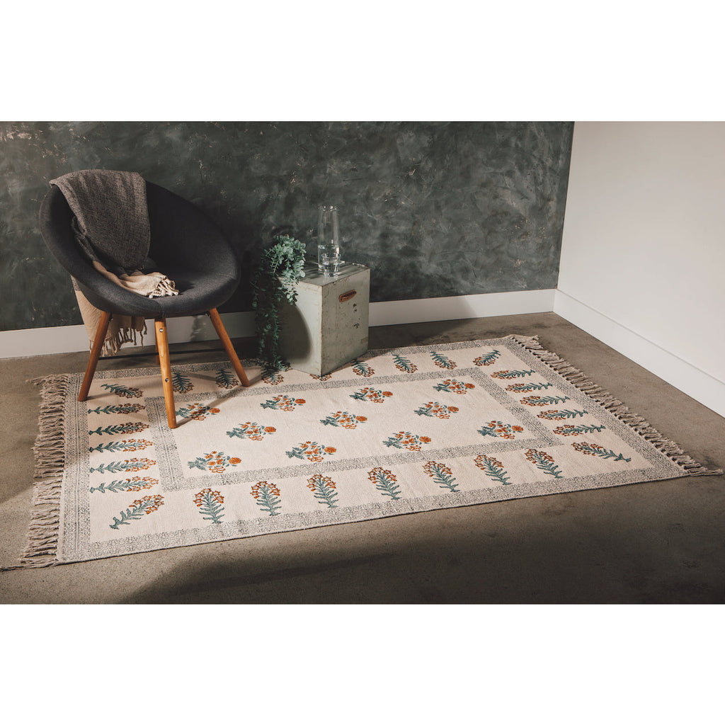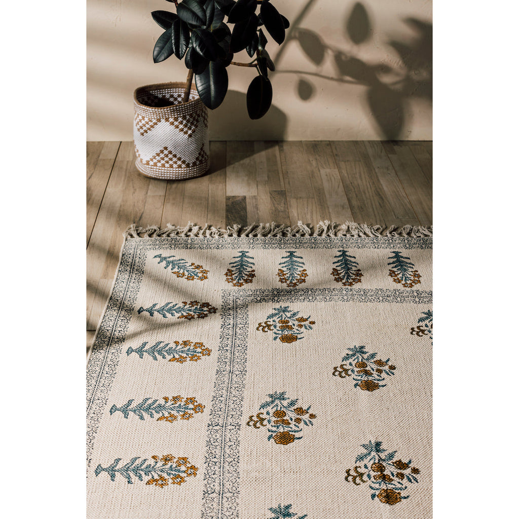 Block-printed by hand and accented with rope detailing, each rug has a bespoke quality that is sure to add textural interest and characterful style to your home.