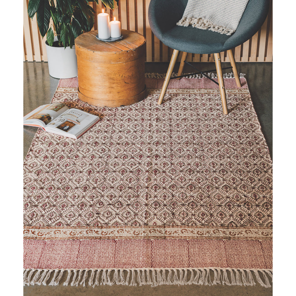 Block-printed by hand and accented with tufting or rope detailing, each rug has a bespoke quality that is sure to add textural interest and characterful style to your home.