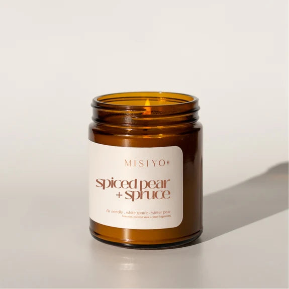 Experience the comforting embrace of winter with the Misiyo Candle - Spiced Pear + Spruce.