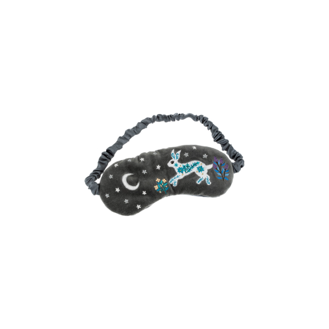 The Celestial Rabbit Velvet Eye Mask in olive green offers a blend of comfort and elegance for restful sleep. Its soft velvet front showcases a delicate hand-embroidered rabbit, floral details, and a crescent moon, while the smooth satin back feels gentle on the skin. Designed to block out light effectively, this eye mask promotes relaxation and helps protect delicate skin from fine lines. A thoughtful and sustainable gift, it’s perfect for anyone seeking a luxurious way to unwind and pamper themselves.