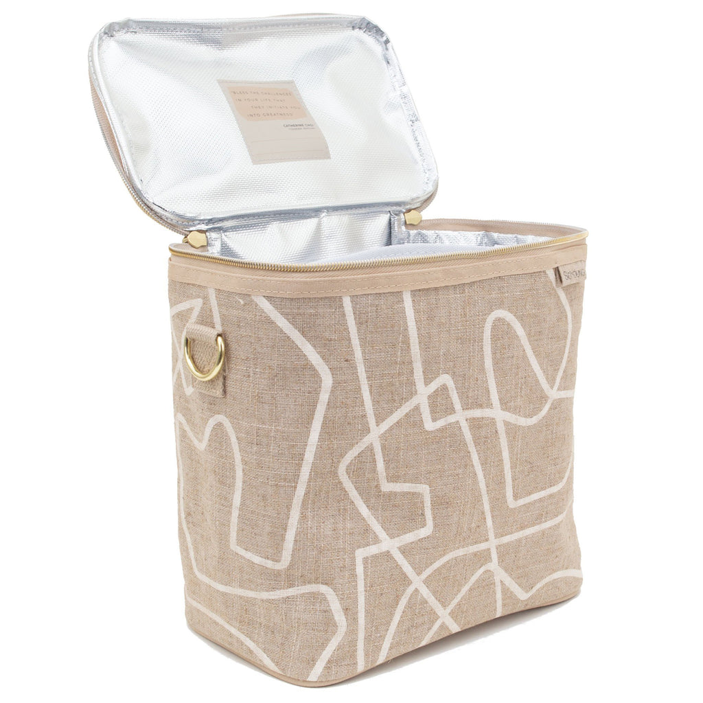 Meet your new favourite lunch bag! A contemporary version of our large cooler bags, our Lunch Poches (French for "Pocket") were designed to complement foodie, fashion and wellness focused lifestyles. It's time to stop using shopping bags to carry your lunch and elevate the lunch experience. Purposeful features include a removable insert lining for easy cleaning, a messenger strap to double as a purse, and an inspirational name tag to remind you to live with intention. Constructed of our signature linen blend with tonal trims and gold hardware, our Block Brush print has a sophisticated, minimal vibe.
